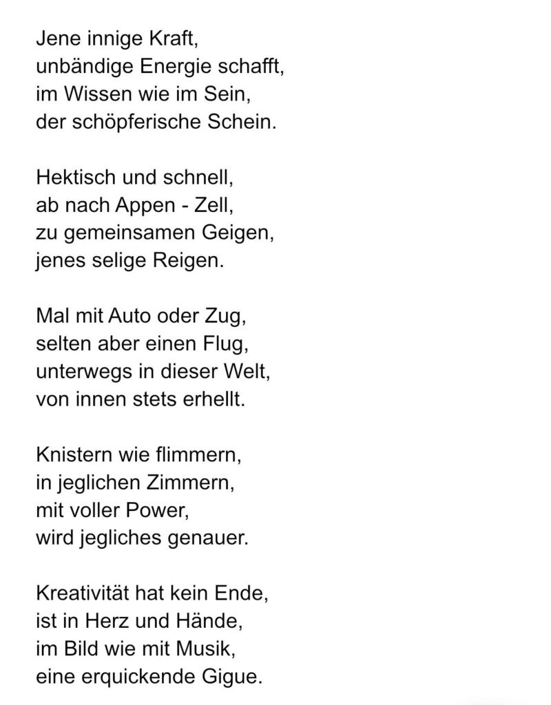 Begegnung (2) Begleiter (1) Blick (1) Erfüllung (1) Erinnerung (1) Ernten (1) Firmament (1) Gedanken (4) Glück (8) Impressionen (1) Inspiration (1) Konzert (2) Leben (1) Licht (2) Melodie (1) Mut (2) Nacht (2) Neugierde (1) Seeligkeit (1) Sterne (1) Wut (1) Zeit (2) Ziele (1) Zukunft (1)
